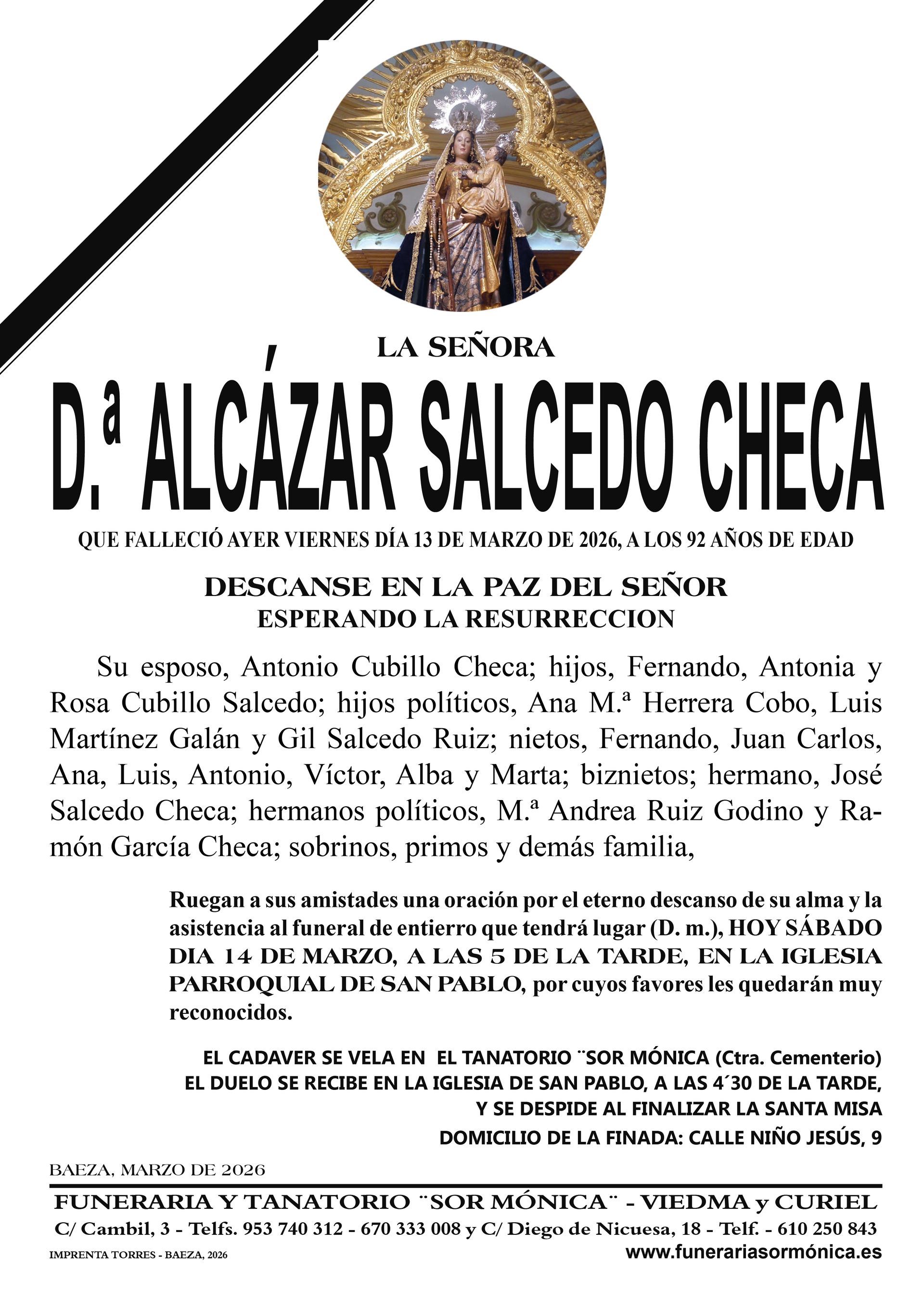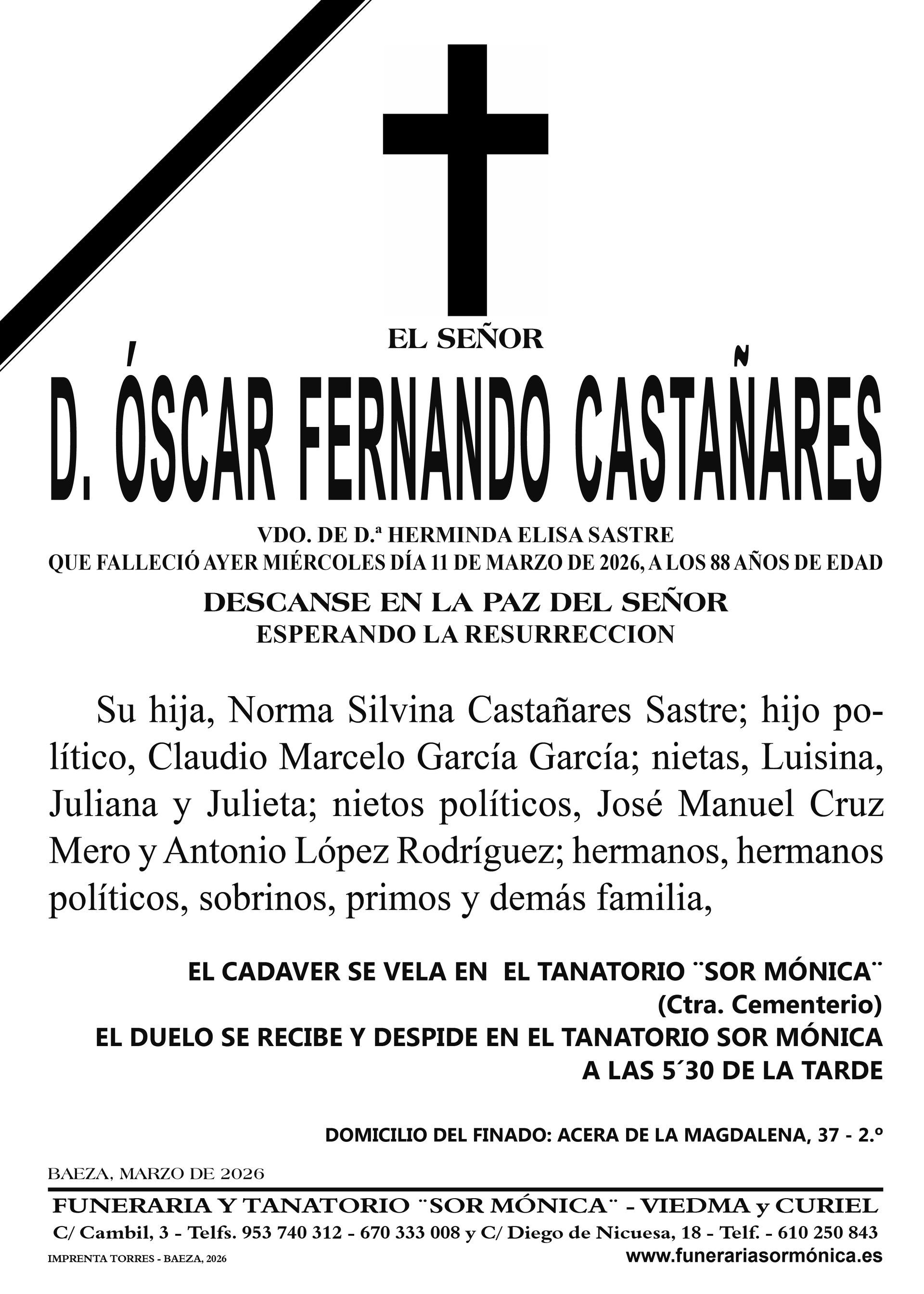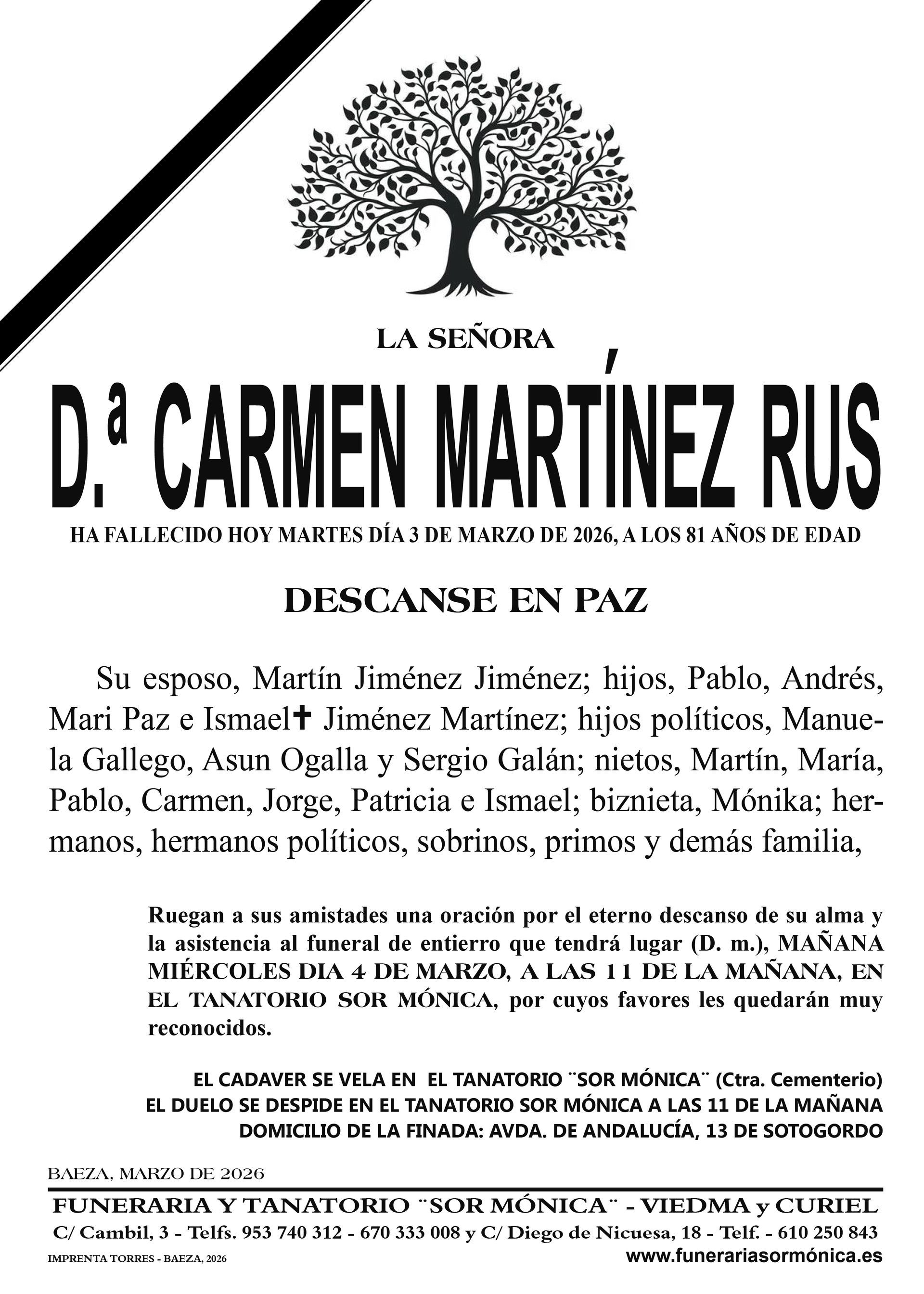 ENTIERRO JUEVES 12 DE MARZO, TANATORIO SOR MÓNICA.