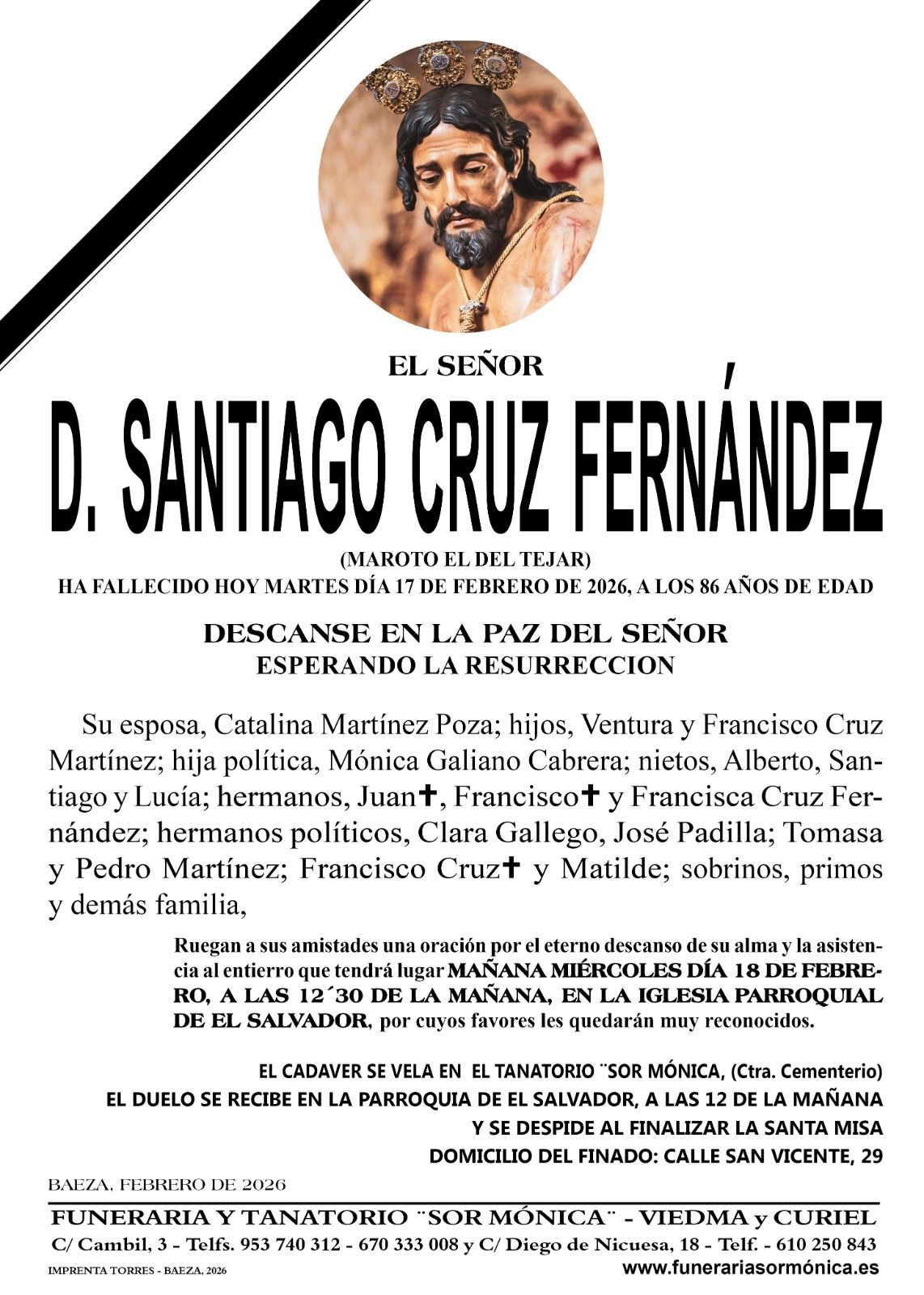 Esquelas entierros en Baeza